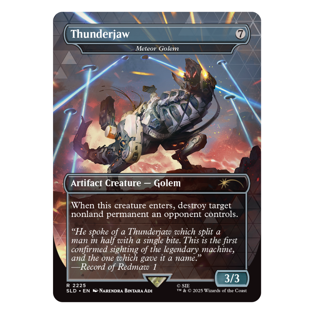 Följ med Aloy på ett nytt äventyr i denna unika Magic: The Gathering x Horizon: Forbidden West Secret Lair-utgåva! Denna samlarserie förenar det legendariska kortspelet med Guerrilla Games ikoniska värld fylld av maskiner, natur och överlevnad. Varje kort är designat med exklusiv konst och teman direkt inspirerade av spelets hjältar och fiender – ett måste för både Magic- och Horizon-fans.