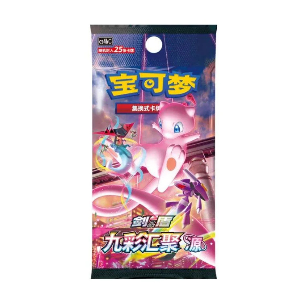 Fill out your Pokémon TCG collection with the Pokémon Nine Colors Gathering Mew CS4b Jumbo Booster Pack . This simplified Chinese edition contains 25 cards per pack , including powerful and rare cards from the Nine Colors Gathering set. Perfect for both collectors and players looking to expand their deck with unique Pokémon cards.
