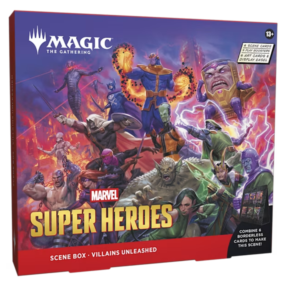 Släpp lös de mäktigaste skurkarna i Marvel-universumet med Magic: The Gathering | Marvel Super Heroes Villains Unleashed Scene Box! Detta 3-pack är perfekt för både samlare och spelare som vill uppleva unika boosters med Marvel-tema, foil-kort och sällsynta borderless mytiska kort.